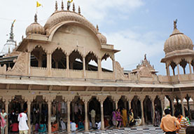 Shriji , a beloved name for Radha , the daughter of this land and intimate companion to Krishna. It is one of the oldest temples in Barsana which is approximated to be built 5000 years ago on the Bhanugarh hill top. Temple’s another name is Ladli Lal ji temple means beloved Radha’s temple. This red stone temple was renovated and restored by Narayan Bhatt, a Vaishnavite. The temple was built during the reign of Akbar who was secular king , believes in equality of religions. Thus the temple architecture gives a clear shadow of the Mughal era architecture. Specialities of the temple are the sculpture inside the temple and magnificent paintings on the walls of the temple. Radha was daughter of Vrishbhanu whose temple is built at the beginning, on the way to hilltop temple. Shriji Temple is a landmark destination of Mathura tourism which every devotee should traverse.