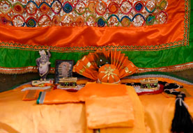 Baithaks in Pushtimarg religion are holy places where Shri Vallabhacharya, the founder of Pushtimarg, narrated the Holy Bhagvad Katha. They are total 84 in number and spread all over the country. Mahaprabhuji had circled the whole of India three times and done sthapna of these various Baithaks. Each Baithak has its own particular Charitra (description). Baithaks are holy places where there is no Idol or Chitra (Picture); seva is done of Gaddi (Seating).